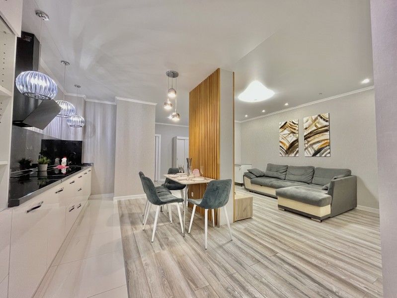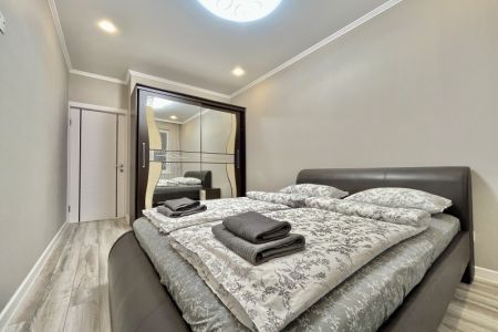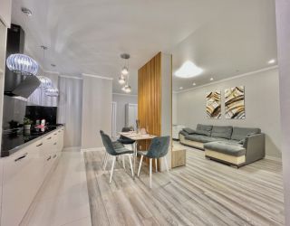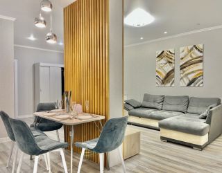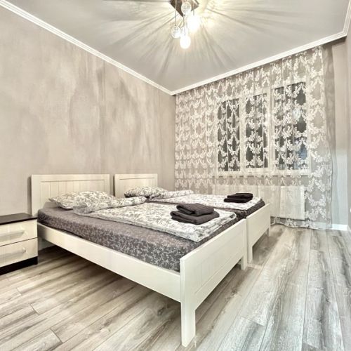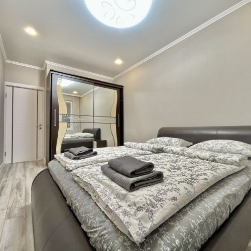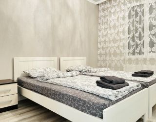 Апартаменты находятся в современном многоэтажном здании в новом жилом квартале города. В распоряжении гостей просторный 4-х местный номер со светлым интерьером, дополненным яркими деталями. Апартаменты оснащены кухней с индукционной плитой, в санузле – ванна, фен и косметические принадлежности для гостей. Среди удобств – стиральная машина и сеть wi-fi.